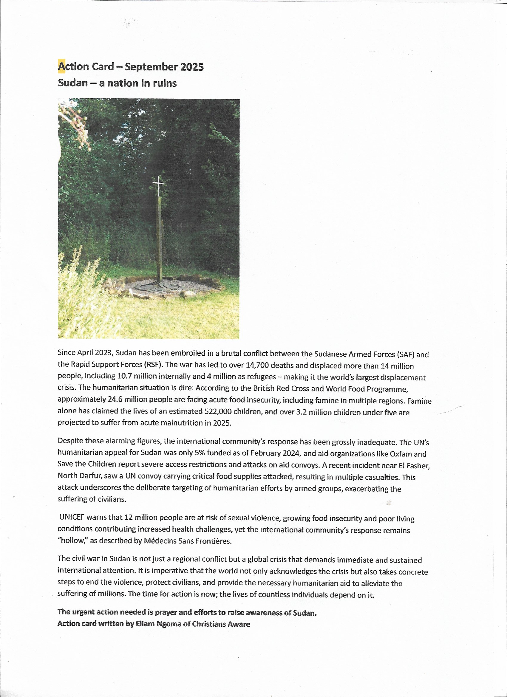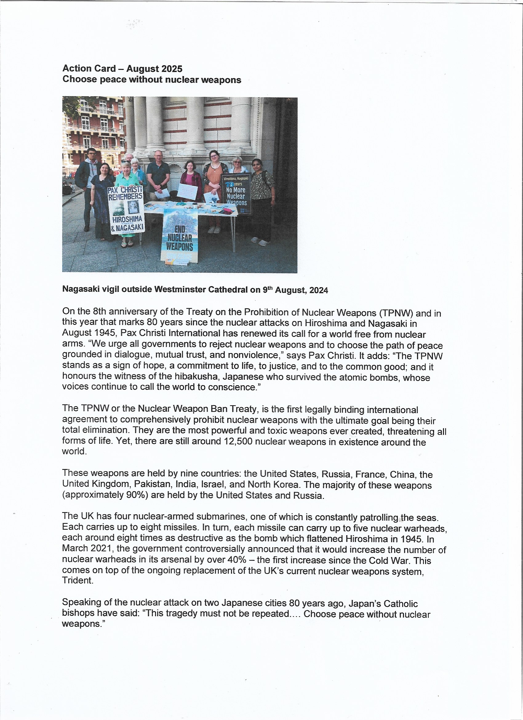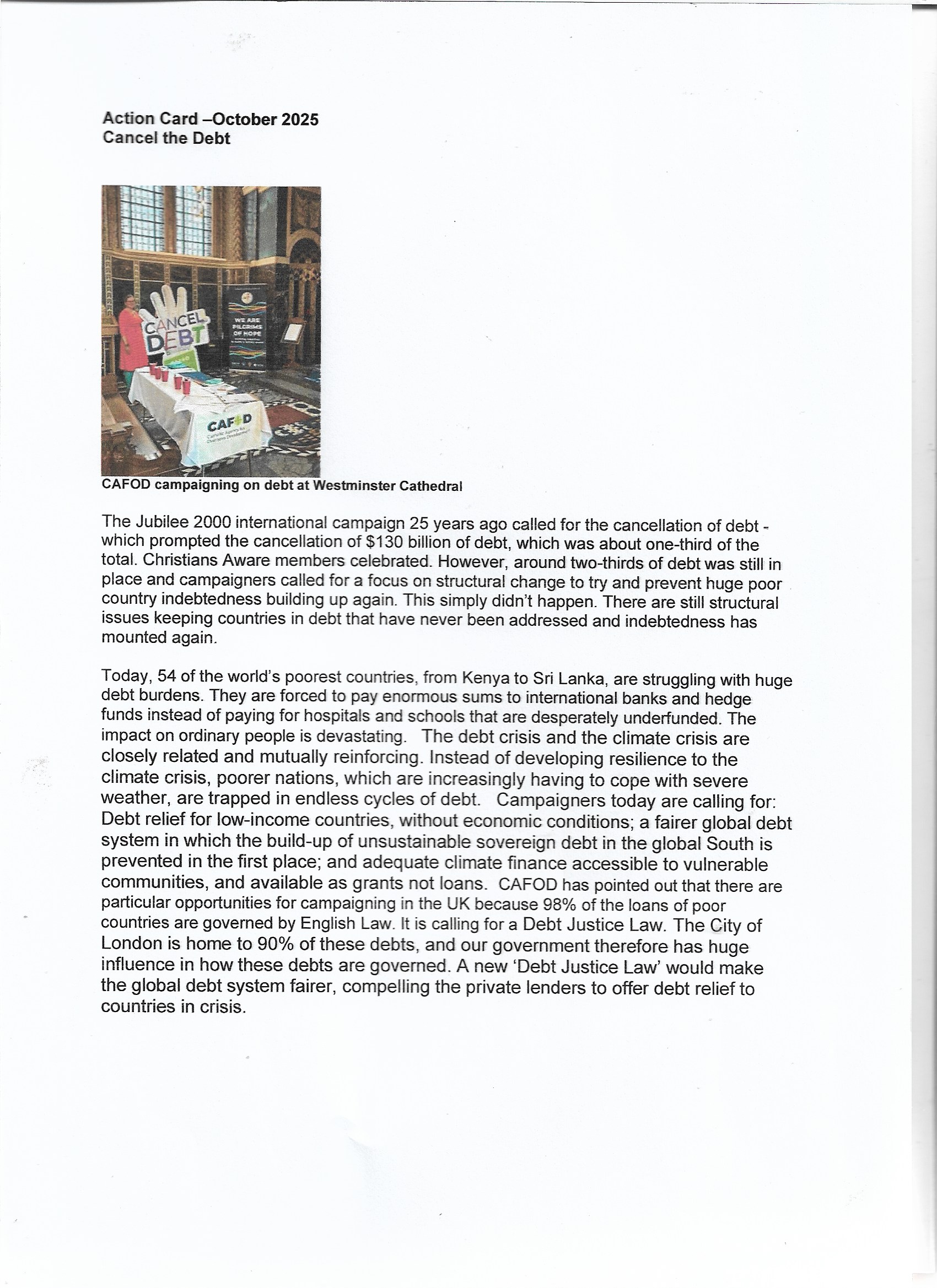 This action card was prepared by Ellen Teague of the Columban Justice, Peace and Ecology Team. https://columbans.co.uk/update/justice-peace/