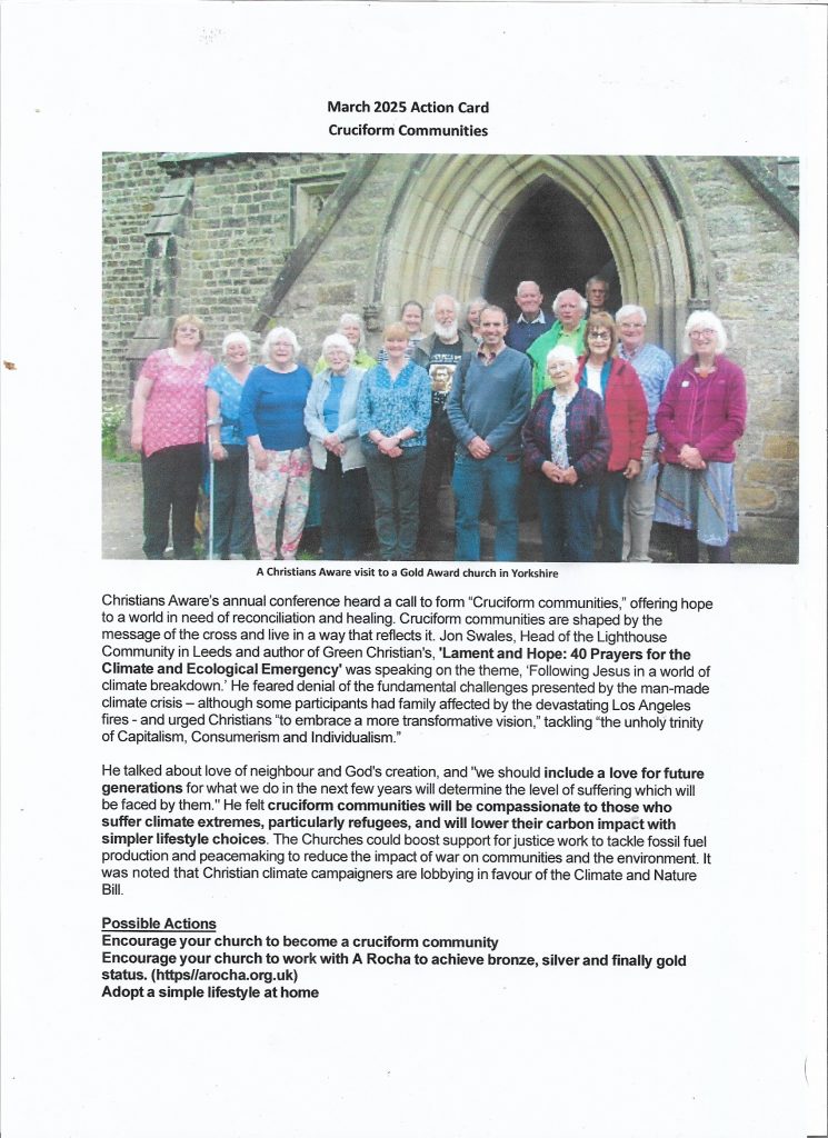 Jon Swales, Head of the Lighthouse Community in Leeds and an eco-activist, spoke on the theme, ‘Following Jesus in a world of climate breakdown.’ He called for the formation of “Cruciform communities,” offering hope to a world that is “unravelling,” particularly because of the challenges of human-induced climate change. He urged Christians “to embrace a more transformative vision,” tackling “the unholy trinity of Capitalism, Consumerism and Individualism.”  He feared ongoing denial of the climate crisis, including denial in the Churches. “Fossil fuels bring a curse upon humanity,” he warned. He felt cruciform communities will be compassionate to those who suffer climate extremes, particularly refugees, and lower their carbon impact with simpler lifestyle choices. The Churches should boost work to tackle fossil fuel production and undertake peace-making to reduce the impact of war on communities and the environment.