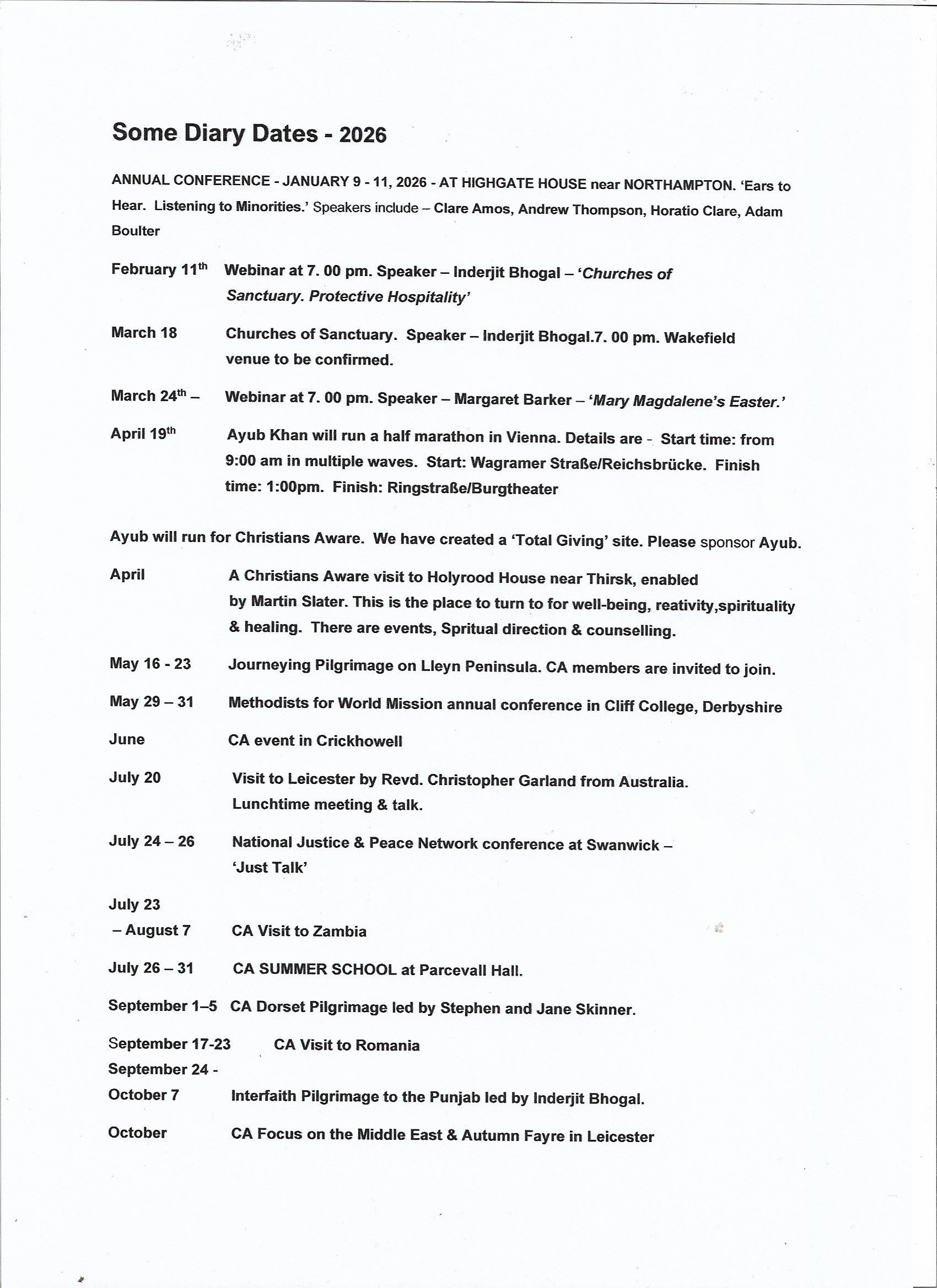 Christians Aware January 2024 Annual Conference: Reconciliation in a Fractured world.